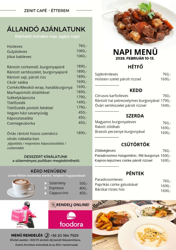 Várjuk Önöket a Zenit Kávéházban – Keszthelyen, egész napos menüvel és megújult állandó kínálattal. Elviteles rendelés: +36 20 364 7929